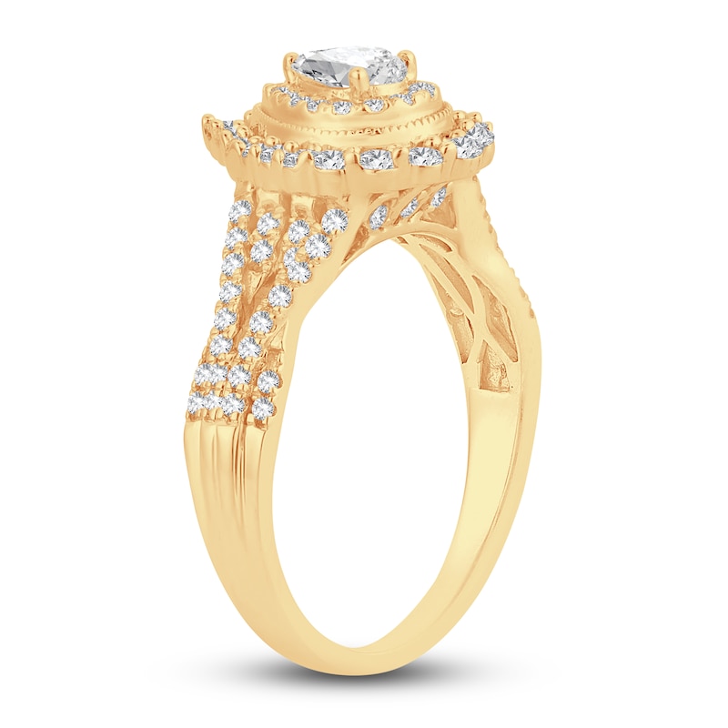 Diamond Double Halo Ring 3/4 ct tw Pear/Round 14K Yellow Gold | Jared