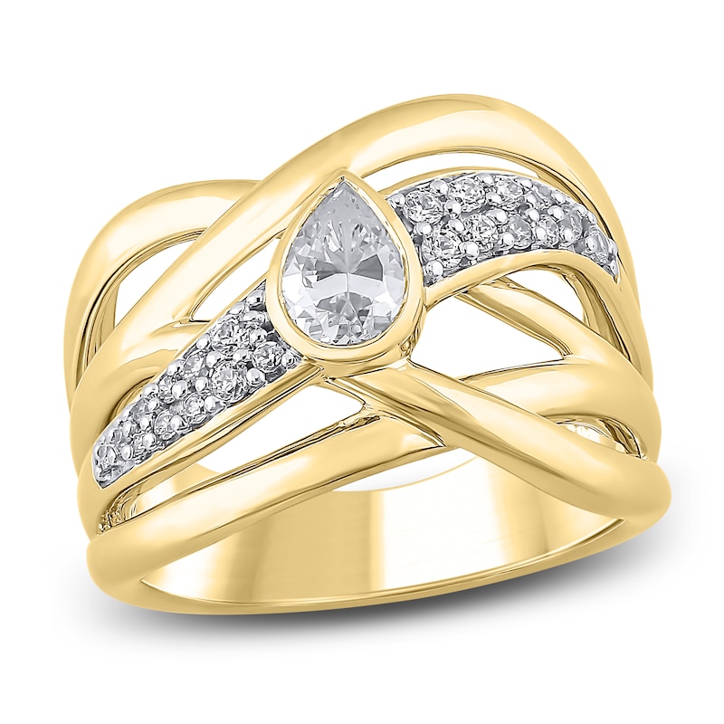 Pear-Shaped Diamond Multi-Row Crossover Anniversary Ring 3/4 ct tw 14K Yellow Gold | Jared