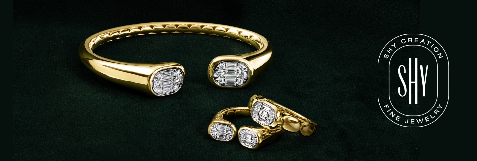 ICON Lumeria collection reimagines Shy Creation’s iconic logomark in bold, geometric form. Radiant baguette and round-cut diamonds meet bold, geometric design – crafted into wearable art. Designed to stand out, this collection is a tribute to signature style, elevated artistry, and the power of personal expression.